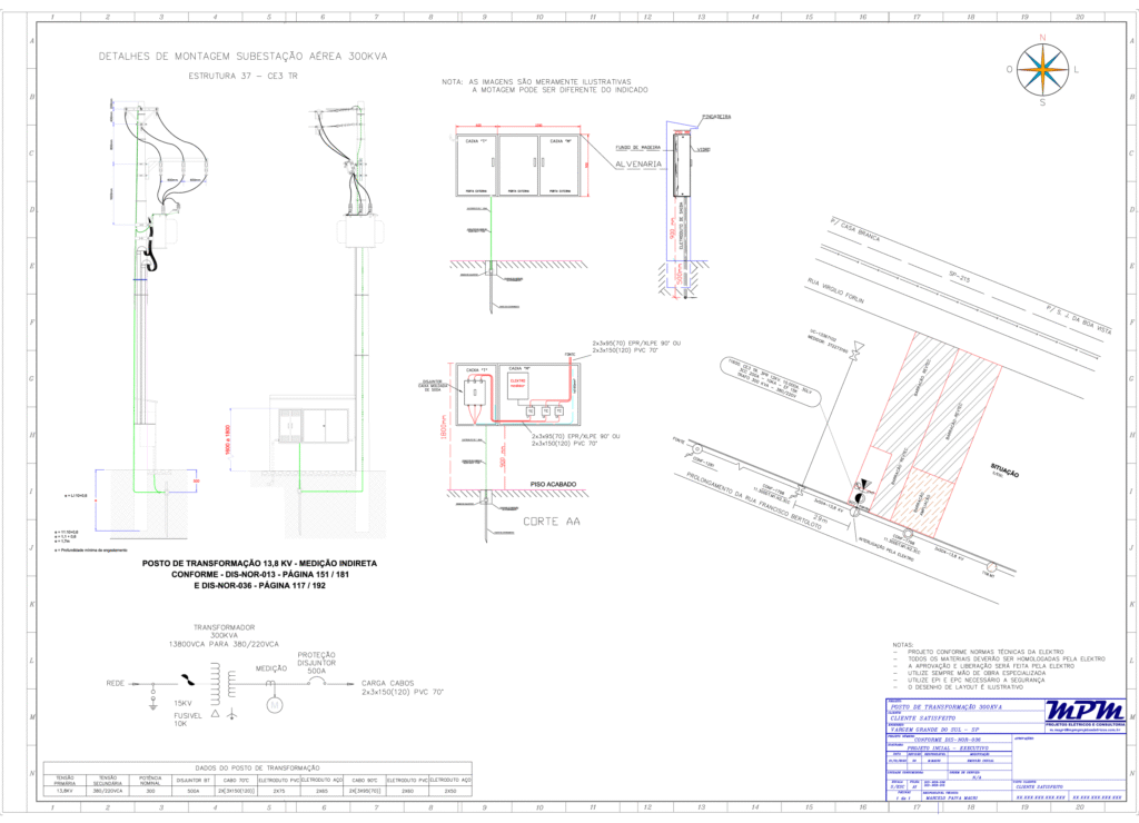 • Subestações aéreas e subestações abrigadas, dimensionadas conforme demanda.