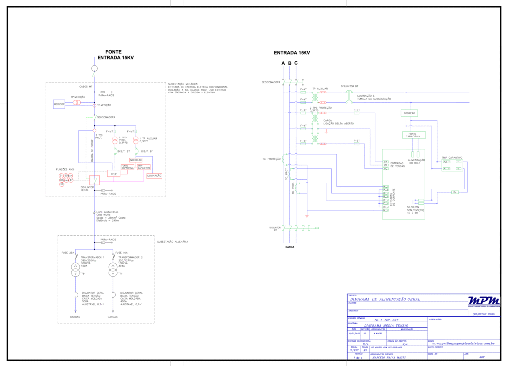 DIAGRAMA UNIFILAR E MULTIFILAR DA SUBESTAÇÃO.